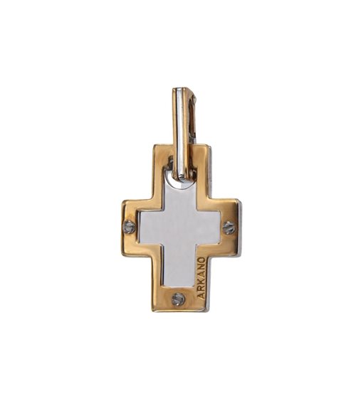 croce in oro bianco e rosè 18 Kt. di Arkano con 24 diamanti Pt. 24 G VVS taglio a brillante, n° 1 diamante nero Pt. 1,5, maglia sganciabile per avere la possibilità di agganciare nei due lati