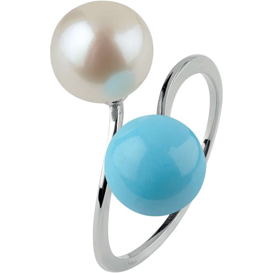 Anello in oro con perla mm. 8 e perla in pasta di turchese