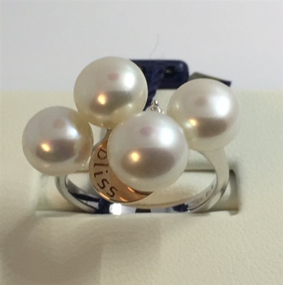 anello in oro 18 kt.,1diam. ct. 0.03 color H, 4 perle FW 7,5/8 mm