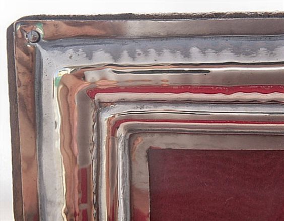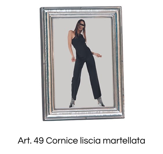 Art. 49 Cornice liscia martellata. Portafoto in lastra d'argento 925/1000 fatta a mano, con retro in legno. 6X9 cm.