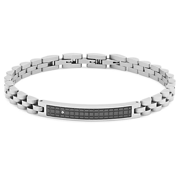 BRACCIALE MARCA "COMETE" UBR 981 IN ACCIAIO , PVD NERO , ZIRCONE BIANCO, ACCORCIABILE