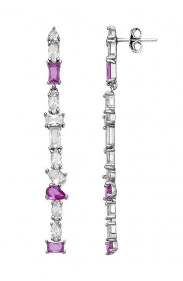 Orecchini in Argento 925‰ e Zirconi bianchi e rosa. Lunghezza 6cm