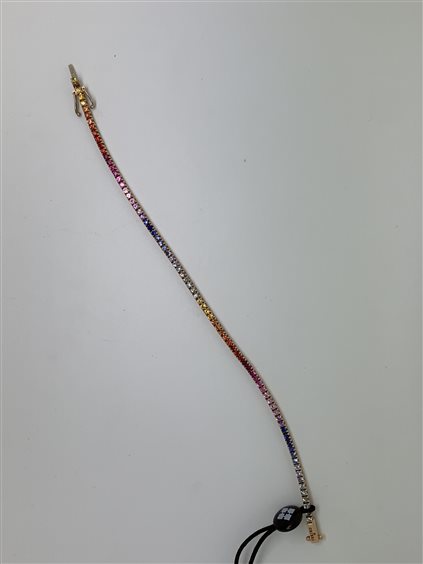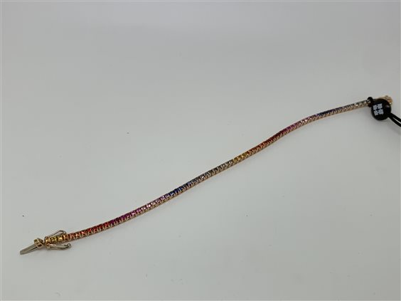 BRACCIALE TENNIS IN ORO GIALLO 18 KT CON ZAFFIRI MULTICOLOR 2,50 CT.LUNGHEZZA BRACCIALE 16 CM.REALIZZATO IN ITALIA DA CRIERI.