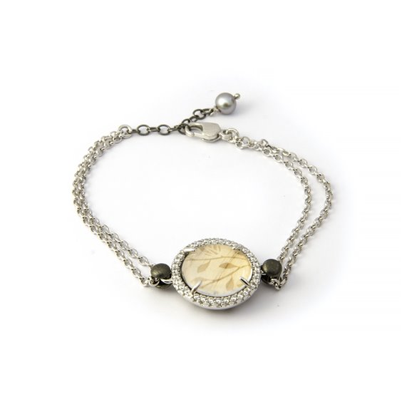 Bracciale in bronzo rodiato e frassino, copertura in cristallo di Rocca, contorno in Swarovski