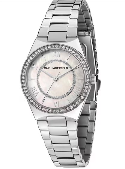 OROLOGIO KARL LAGERFELD HAMBURG - R0553105506 - Genere: Donna, Materiale e finitura cassa: Acciaio, Misura cassa: 30.00mm, Spessore cassa: 7.70mm, Finitura cassa: Lucido, Colore cassa: Silver, Vetro: Vetro minerale, Materiale cinturino: Acciaio, Colore cinturino: Silver, Chiusura: Fibbia deployante con pulsanti, Movimento: Quarzo, Water resistant: 5 atm, Garanzia: Ufficiale 2 anni Karl Lagerfeld, Confezione: Originale Karl Lagerfel
