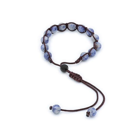 La Sodalite è la pietra della ‘buona stella’ che aiuta ad essere più sereni, senza paure ed angosce; aiuta a superare gli ostacoli, i sensi di colpa, le paure e a trovare una migliore qualità di vita, è calmante, equilibra le energie psicofisiche.Bracciale Kenshò unisex realizzato con pietra Sodalite e cordoncino marrone con chiusura a nodo macramé. Pietra naturale 6 mm. Taglia unica. Confezione completa di astuccio originale “Kenshò” e certificato di garanzia.