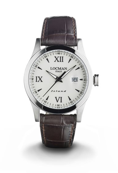Orologio uomo con movimento solo tempo al quarzo, design esclusivo italiano. Cassa: DA 40 mm IN ACCIAIO INOX LUCIDO E SATINATO CON FONDELLO IN TITANIO. Quadrante: COLORE BEIGE CHIARO CON NUMERI ROMANI E INDICI COLORE NERO, DATARIO A ORE 3. Vetro: MINERALE ANTIGRAFFIO CON TRATTAMENTO ZAFFIRO E LENTE A ORE 3. Cinturino: PELLE STAMPA COCCODRILLO DI CLORE MARRONE. Water resistant: 5 ATM.