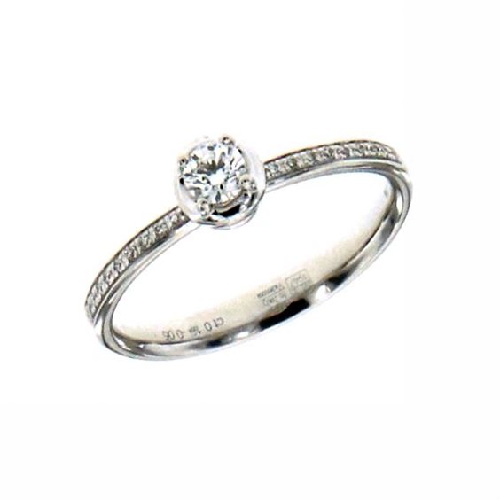 Anello in oro bianco con diamanti kt. 0.14 e 0.05 colore G