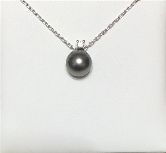 GIROCOLLO IN ORO 750/000 CON 1 DIAM. PT. 0,06 G SI PERLA TAHITI MM.9/10