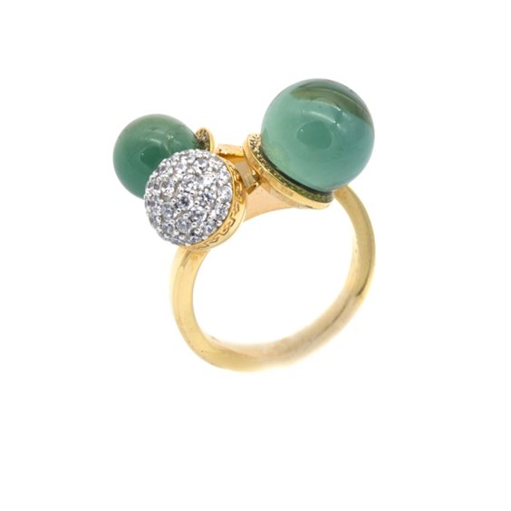 Anello Rebecca in bronzo dorato con doppia pietra idrotermale e zirconi bianchi. L'anello è disponibile in bronzo placcato oro giallo. Anello regolabile dalla 12 al 18