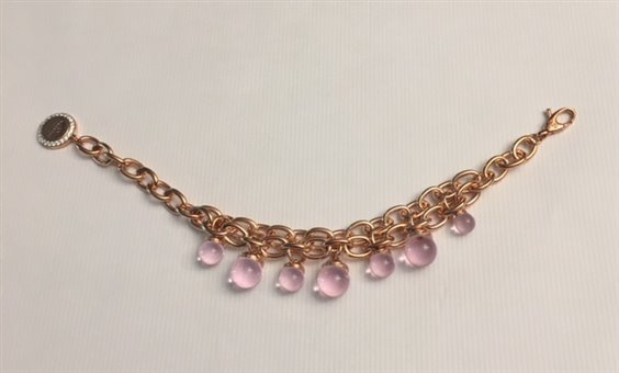 Collana in bronzo, placcata oro rosa, con pietre viola e zirconi