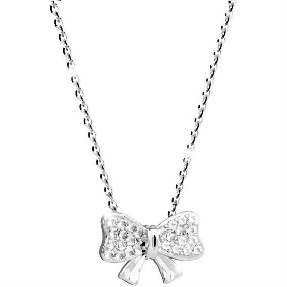 collana in argento con ciondolo a forma di fiocco con zirconi