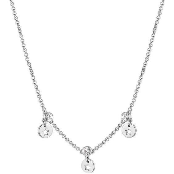 Collana Da Donna Di Sagapo Della Collezione Luce. Collana Luce In Acciaio 316L, Cristalli Crystal E Pendenti Con Stelle. Lunghezza: 440 Mm. Peso: 6,6 G. La Referenza È Sce07
