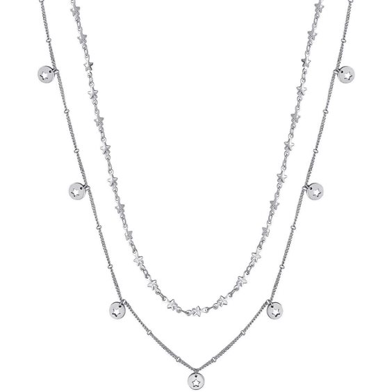 Collana Da Donna Di Sagapo Della Collezione Luce. Collana Luce In Acciaio 316L, Con doppia catena. Catena Con Stelle. Lunghezza: 420 Mm. La Referenza È Sce010