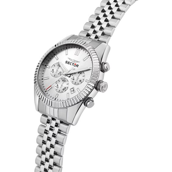 Orologio Sector 240 cronografo uomo Cassa in acciaio da 41 mm Lunetta zigrinata Quadrante color silver Vetro minerale Cinturino in acciaio Impermeabilità fino a 5 atm