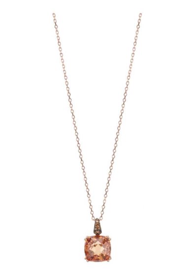 Collana in argento 925‰, finitura oro rose' con zircone champagne. La catena è regolabile da 40 cm a 45 cm.