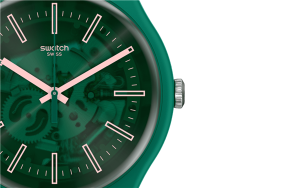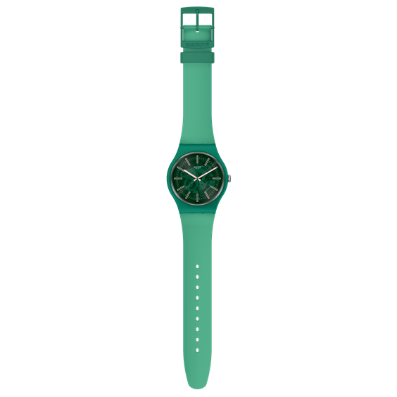 Il fiore all'occhiello di questo orologio New Gent BIOSOURCED è il quadrante chiaro spazzolato con una stampa verde e rosa e un vetro di origine biologica. Le decise sfumature verde opaco della cassa in plastica di origine biologica, il cinturino, il passante e la fibbia rappresentano lo sfondo ideale per questo modello sofisticato.