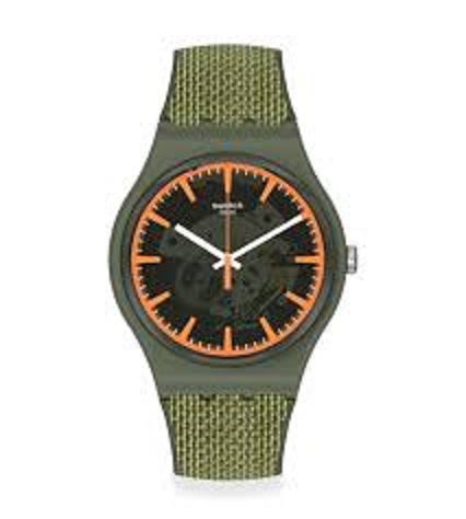 Lascia il portafogli a casa! Con OnGPAY! (SVIG100-5300) puoi pagare contactless con stile: lasciati ammaliare dal cinturino verde oliva con inserto in tessuto e dal quadrante trasparente coordinato con stampa arancione. Tick different!