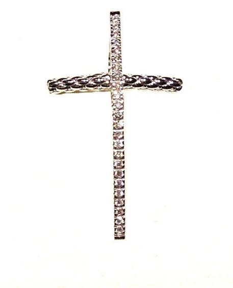Pendente Croce in Oro Bianco 750/1000 18 Kt. con Diamanti Ct. 0,21, di Forma Leggermente Curva, Dimensione Cm. 3,8x2,2, Peso Gr. 3.30 CR74 BBR - Mat.01221442