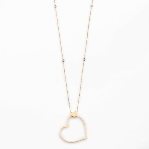 Collana in oro 18kt con cuore grande 30 mm e catena forzatina lunga con 6 diamanti naturali di taglio brillante da ct. 0,06. Lunghezza 80-85 cm