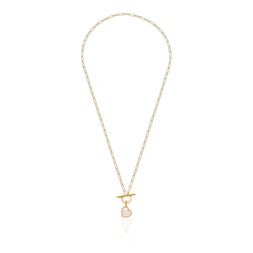 Collana in oro 9kt con pendente a forma di cuore in madreperla, catena forzatina 40,5 cm e chiusura T-bar torchon.