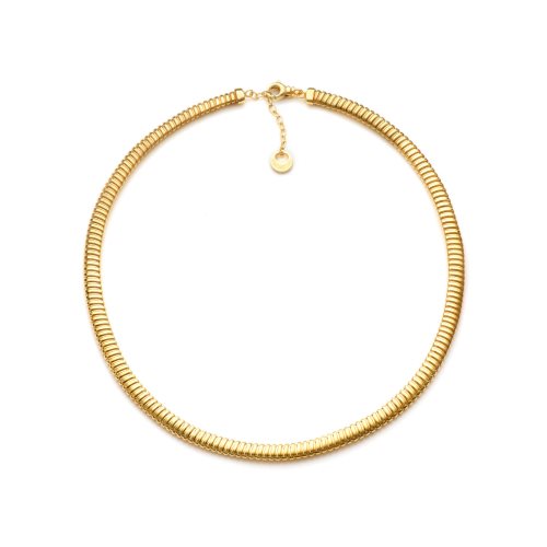 Collana in argento dorato realizzata con catena tubogas. Chiusura a moschettone con anelli di allungamento, misura 40-44,00 cm
