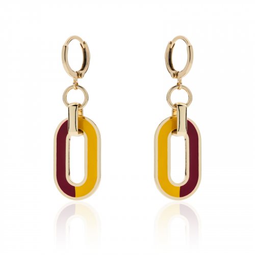 Orecchini in bronzo dorato con smalto rosso e giallo