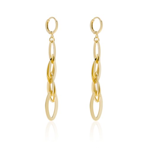 Orecchini pendenti catena a navette concatenata con bagno in oro giallo. Chiusura a monachella tonda. Lunghezza 6,50 cm.