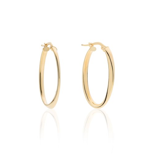 Orecchini in argento dorato a cerchio ovale. Chiusura a baionetta