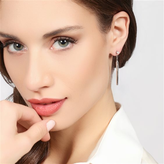 Mini orecchini in argento rodiato a forma rettangolare, maglia chicco di riso. Collezione Chicco.